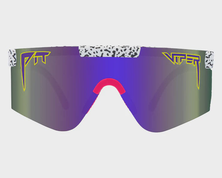 Designed to withstand being sat on, run over, and other rough treatment, according to Pit Viper. -spot Adjustment™ for earpiece length and Turbo Adjustment™ for lens angle. Improved nose piece and optics compared to earlier models, according to Pit Viper. Inspired by the 1980s and 1990s. Polycarbonate lens with 100% UVA + UVB protection.